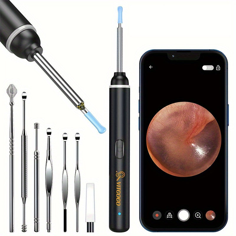 1080p FHD Wireless Ear Otoscope with 6 LED Lights and Ear Wax Cleaner Tool for iPhone, iPad, and Android Smart Phones - Easy Ear Wax Removal and Ear Camera