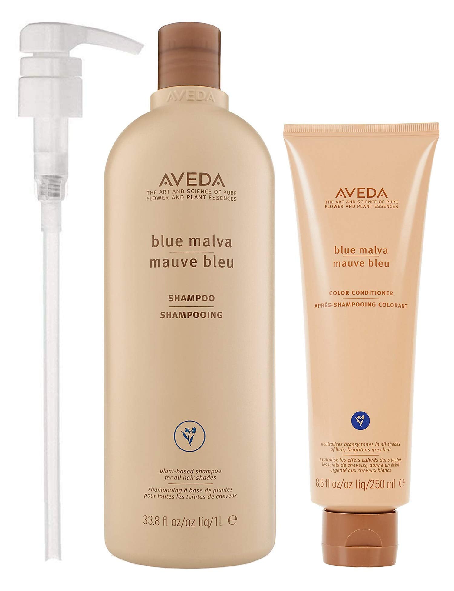 Aveda Blue Malva Color Shampoo 33.8 Oz with Pump & Conditioner Tube 8.5 Oz