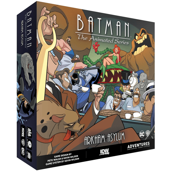 Batman: The Animated Series Adventures Arkham Asylum expansion adds 13 more missions to play through, and an all-new game mode: Clayface mode. In Arkham Asylum players will explore the halls of the infamous psychiatric hospital as they tangle with Clayface, Poison Ivy, Jervis Tetch, The Ventriloquist, Killer Croc, Maxie Zeus, Lock-Up, Clock King, Baby Doll, and Hugo Strange. In Clayface mode, each hero will be given a card that will indicate if they are who they appear to be, or if they’re actually Clayface in hiding. At any time, the Clayface player can reveal their true identity, transforming into the massive Clayface, and turn on their former friends!