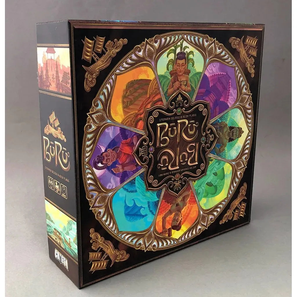 In Buru, you are a noble of the 14th century Majapahit empire, a powerful thalassocracy (maritime kingdom) that presides over the Indonesian archipelago. At the orders of the king Hayam Wuruk and his vizier, the great Gajah Mada, you have set out across the sea to expand the great mandala of Majapahit through commerce and diplomacy. You and your fellow nobles have recently arrived at the remote island of Buru, eager to earn your place in history. Here, you will dispatch your parties to the island to explore, trade, and pay your respects as you compete to win over Buru's residents and ultimately gain the favor of the King himself.