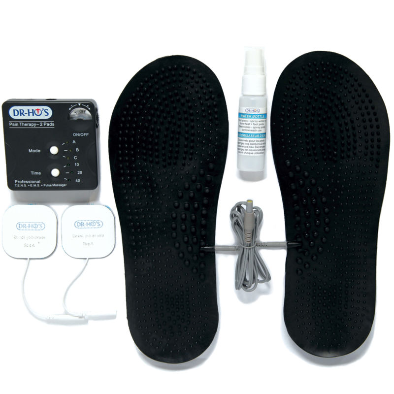 DR-HO'S Foot and Leg Pain Therapy is a professional device that combines the technology of TENS and EMS, as well as our patented Auto-Modulating Pain Relieving Waves technology. It is meant to help reduce muscle tension, improve circulation, and relieve pain. The device uses 12 different types of stimulation that varies in frequency, wave-form, ramp speed and intensity.