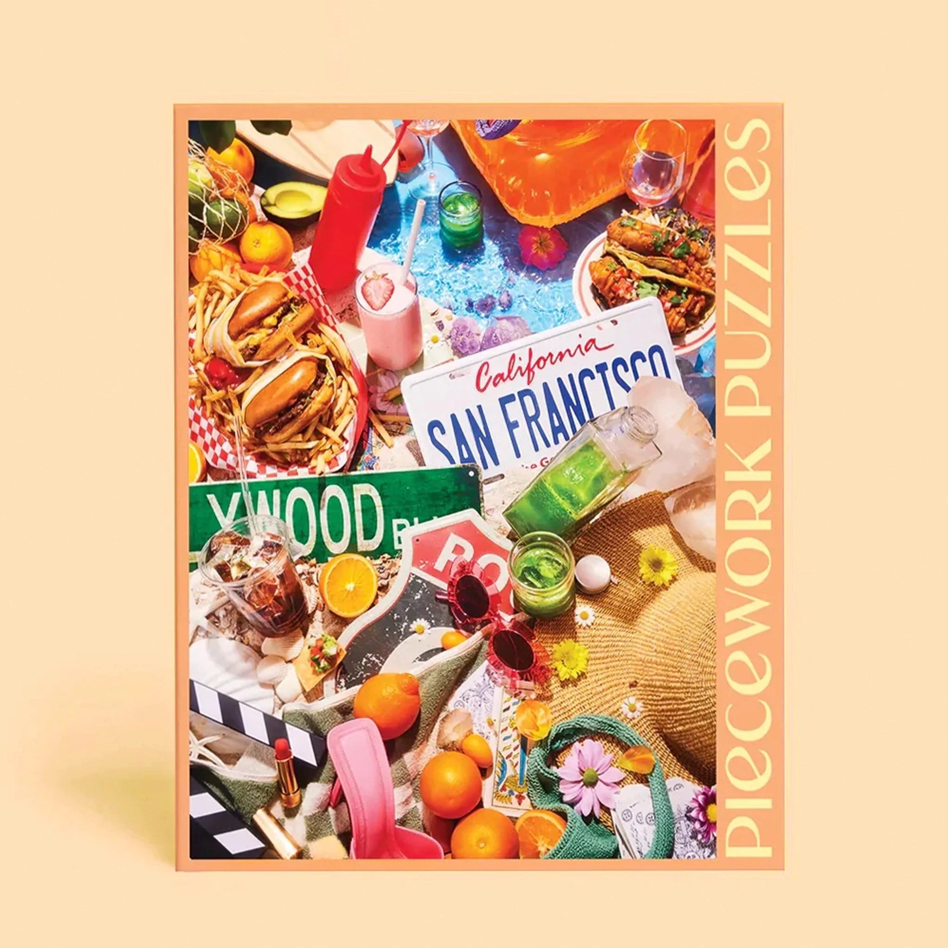 Sunsoaked, citrus-filled, and bursting with tacos, green juice, avocados and every other sunshine state culinary gold — yes, the burgers are animal style — this 1000 piece puzzle is a refreshing, zesty trip to the land of milk and honey.
