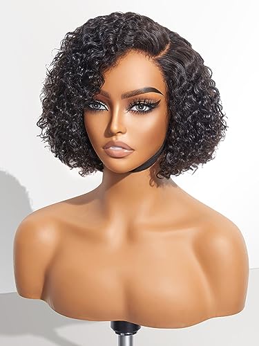 LUVME HAIR 8" Curly Glueless Wigs Human Hair Pre Cut/Plucked, Undetectable HD Lace Wig Ready to Go Lace Bob Wig Short Curly 180 Density