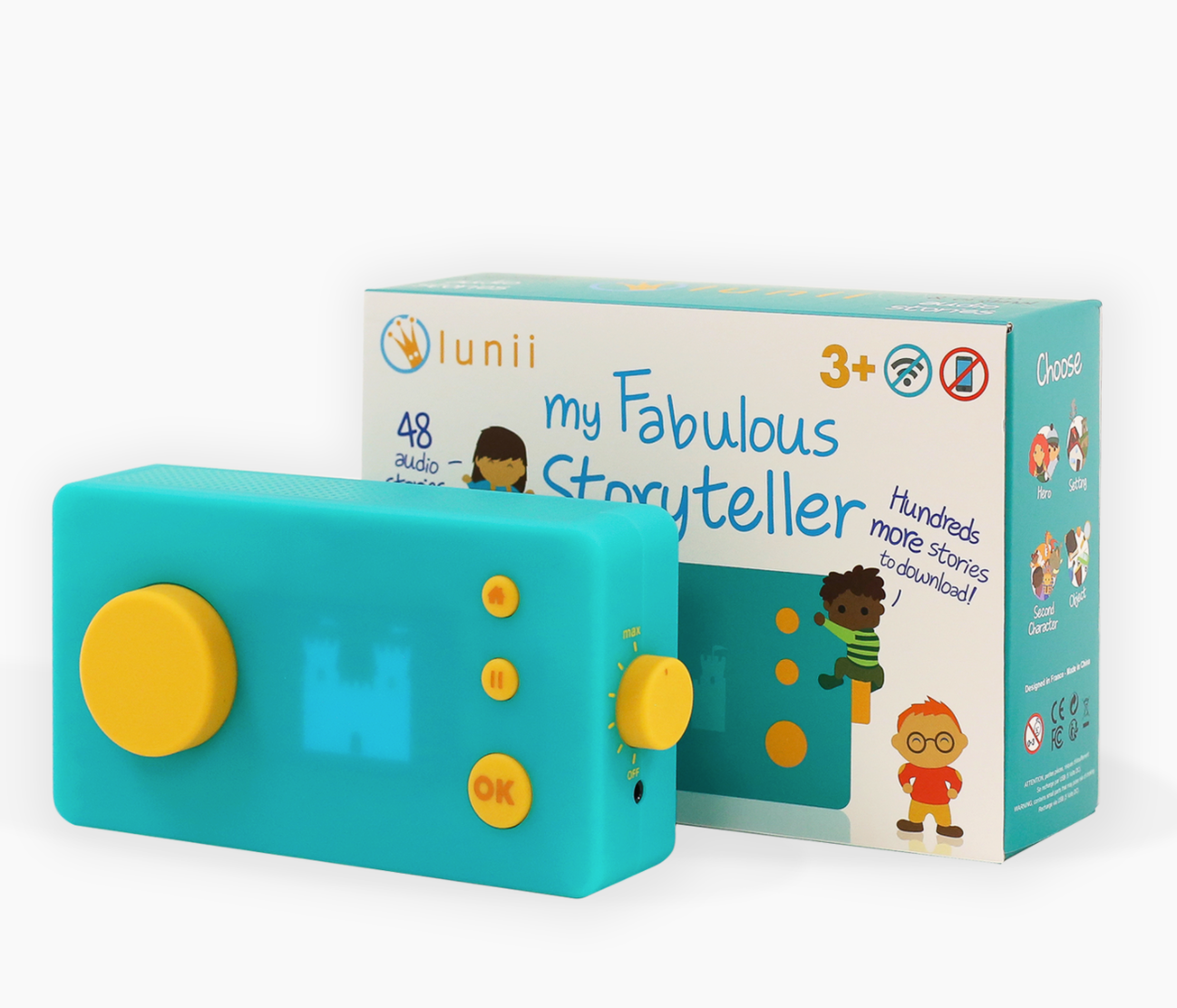 My Fabulous Storyteller is the new-generation, fun and interactive storyteller for children (from 3 to 8 years old) with amazing original content. This incredible device is screen-less and emission-free and allows children to make their own stories by selecting different elements (for example a hero, a setting, a second character, and an object) out of 48 combinations of stories included in the packaging. 100+ stories in 8 languages are then available to purchase on our digital library, the LuniiStore.