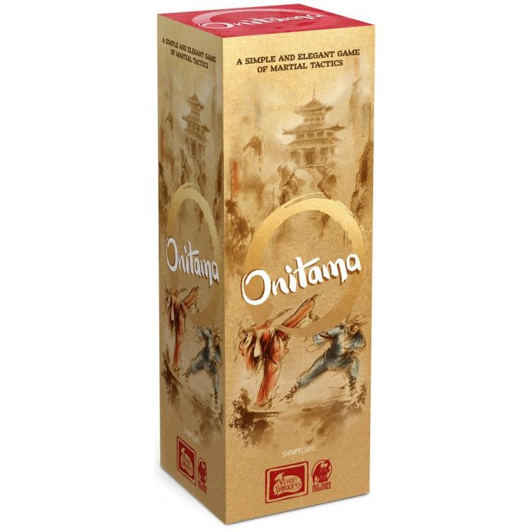Onitama is a two-player, perfect information abstract game with a random starting set-up. On a 5x5 board, both players start with five pawns on their side, with the main pawn in the middle.