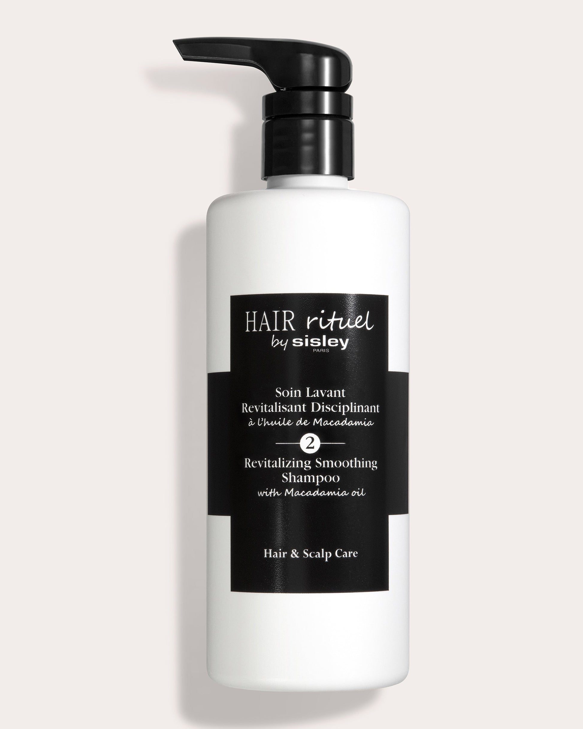 The Revitalizing Smoothing Shampoo with Macadamia oil gently cleanses while providing the necessary vitamins and minerals for the vitality of the scalp and the hair. Its formula benefits from a combination of effective key ingredients targeting the scalp and thehair. Available in a larger format with a pump. Hair Rituel by Sisley-Paris.