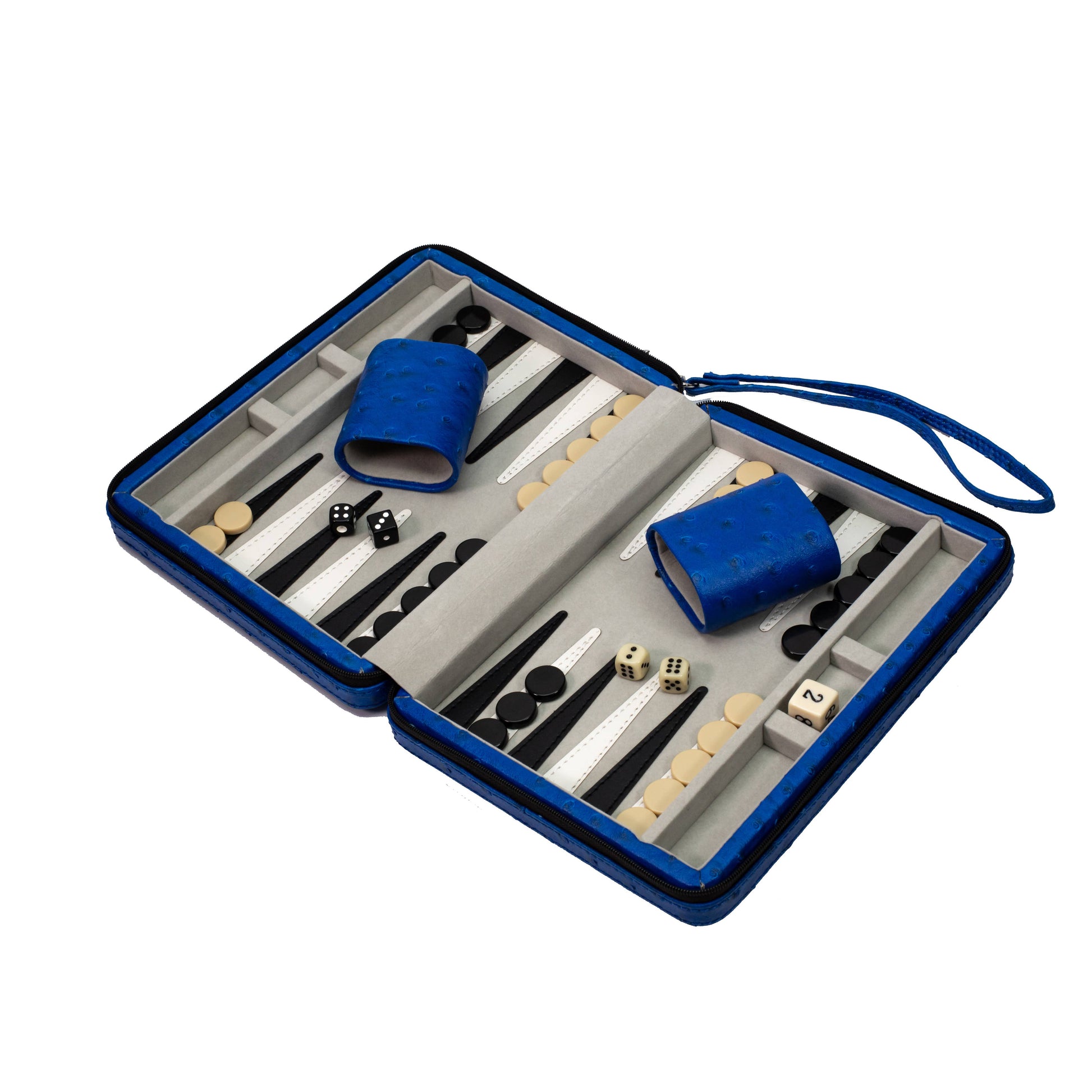 Travel Backgammon Set (Blue Ostrich) - Brouk & Co