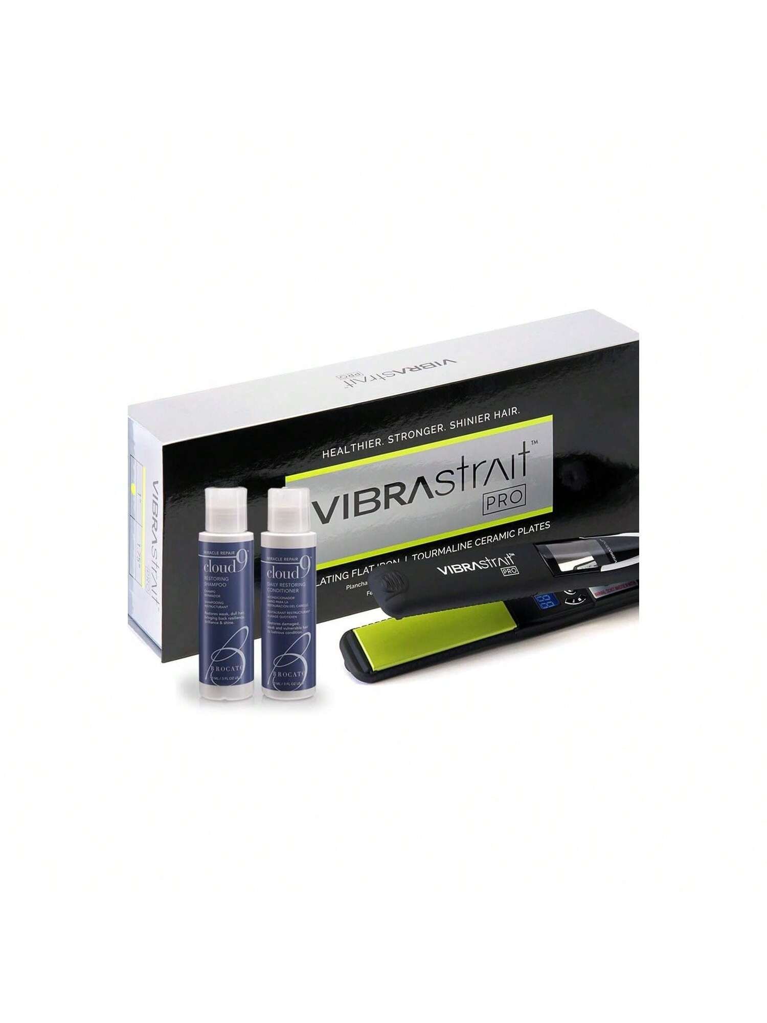 Value Bundle: YONGSTYLE Pro Vibrating Flat Iron, 1-inch with Travel Case & Travel Size Cloud 9 Restoring Shampoo & Restoring Conditioner, 3 Fl Oz | Professional Hair Styling Tools